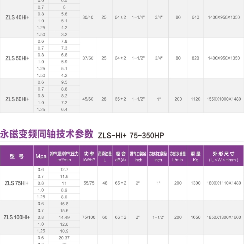優(yōu)化機(jī)頭配比造就大排量: 由于通過長期嚴(yán)謹(jǐn)?shù)睦碚撗芯亢痛罅康男褪皆囼?yàn),為機(jī)頭配比和設(shè)計(jì)的優(yōu)化奠定了堅(jiān)實(shí)的技術(shù)基礎(chǔ)。ZLS-Hi+空壓機(jī)系列產(chǎn)品采用優(yōu)化的機(jī)頭配比與系統(tǒng)設(shè)計(jì),排氣量比同等功率壓縮機(jī)高10%。